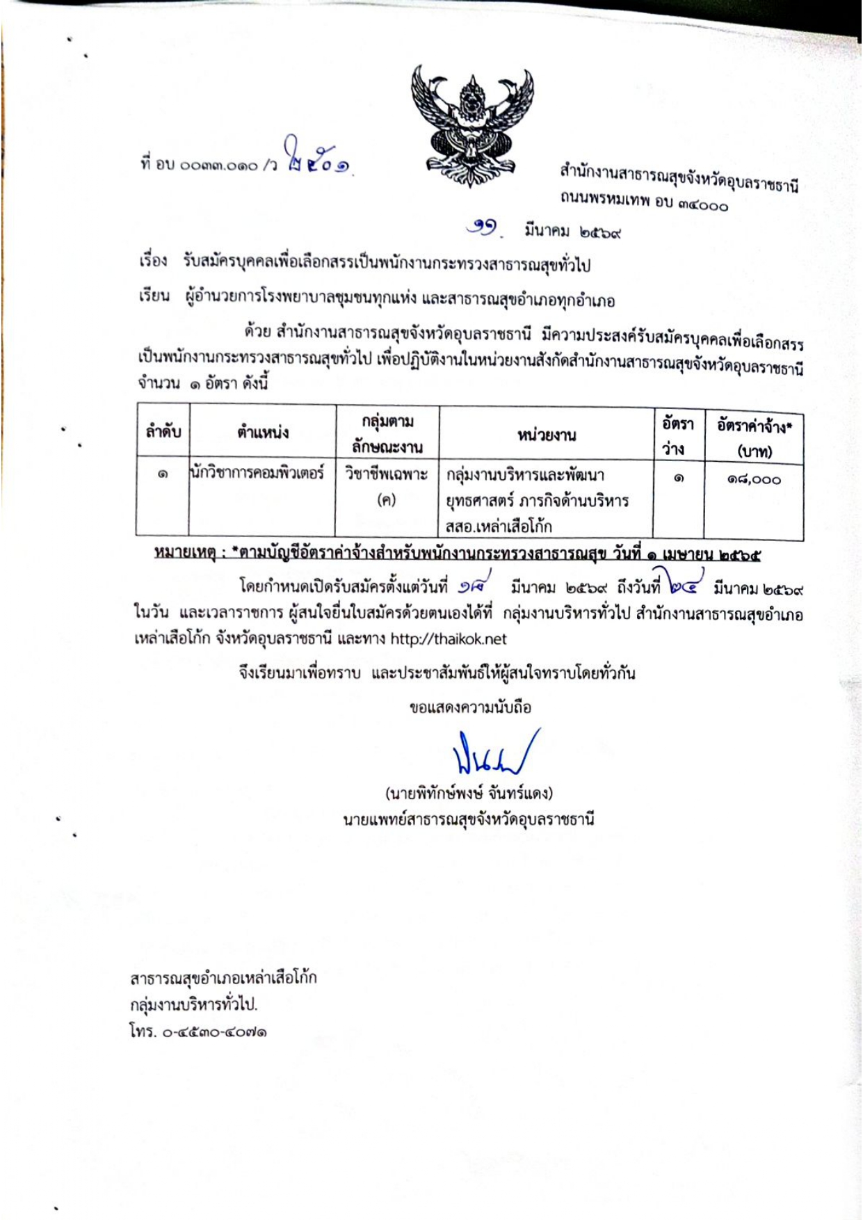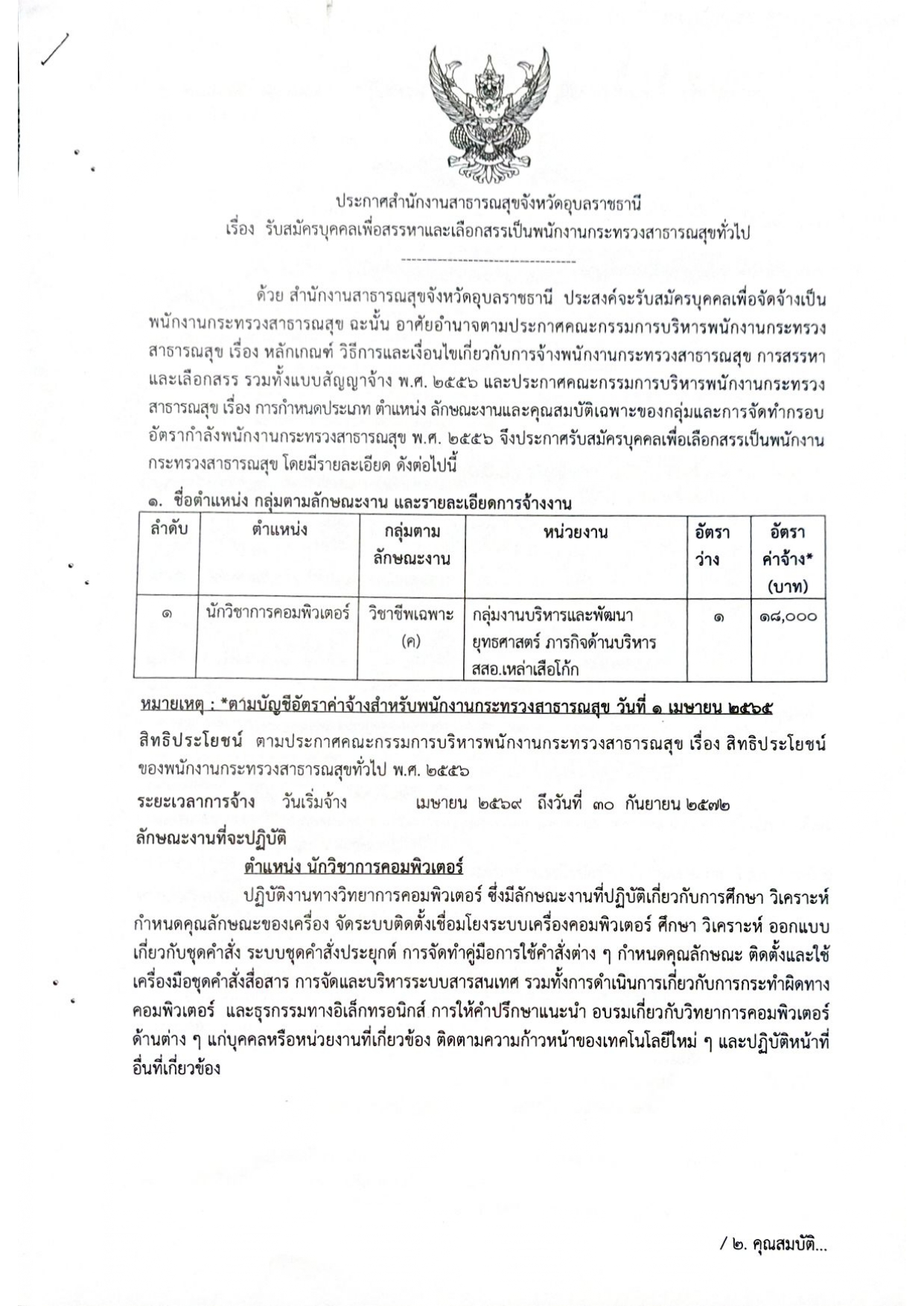 >>ข่าวประชาสัมพันธ์<< เขียนบน 25 พฤษภาคม 2023 โดย วิไลรักษ์ ประสาทศรี Ο ประกาศรับสมัครพนักงานกระทรวงสาธารณสุขทั่วไปตำแหน่ง นักวิชาการคอมพิวเตอร์